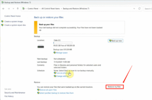 If File History was not enabled, there’s still another built-in option that might help — Backup and Restore (Windows 7). Although the name sounds a bit outdated, this tool is still available in both Windows 10 and Windows 11 and works in a similar way to File History. Here’s how to recover permanently deleted files on Windows 10 via Windows Backup: